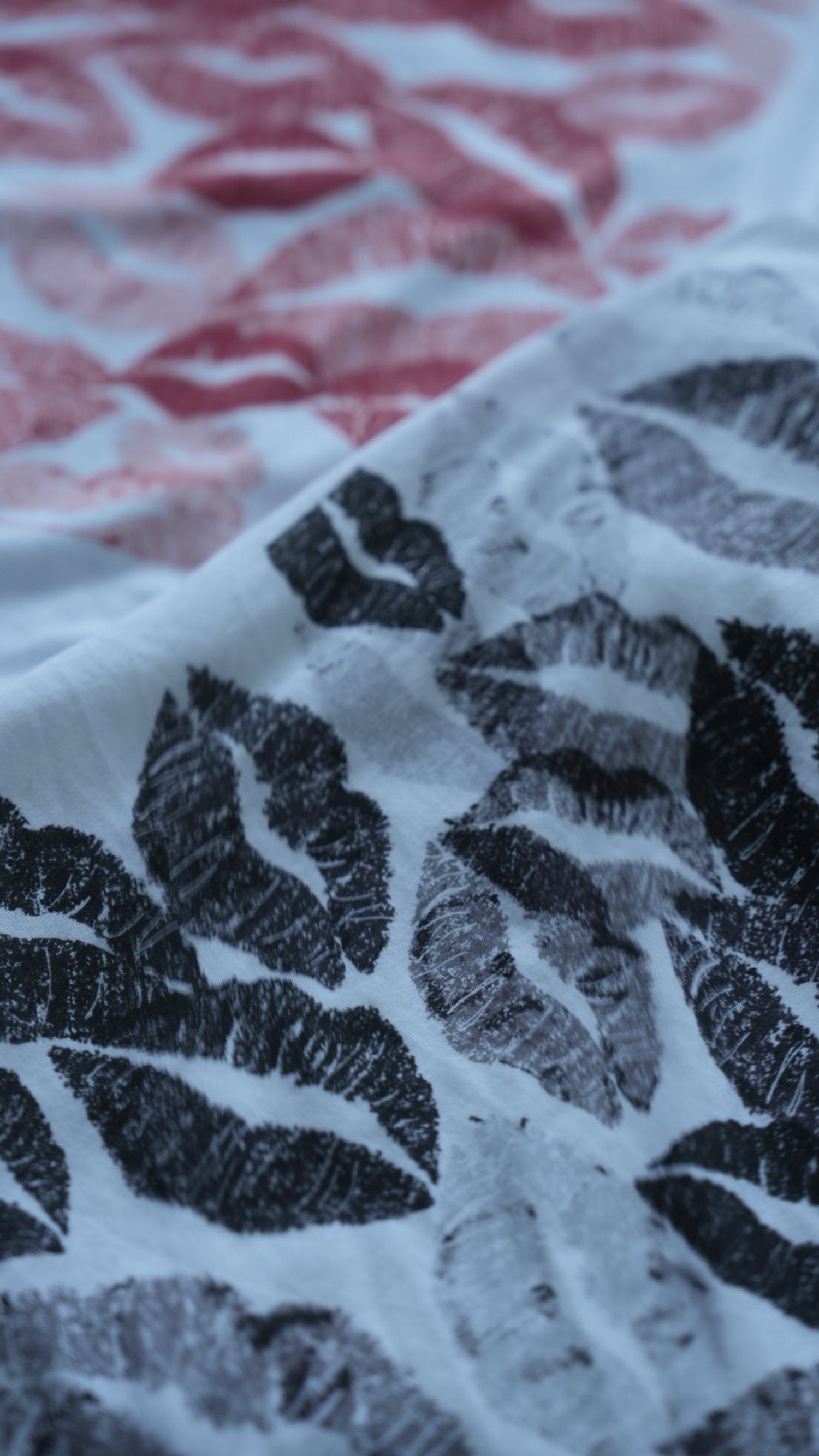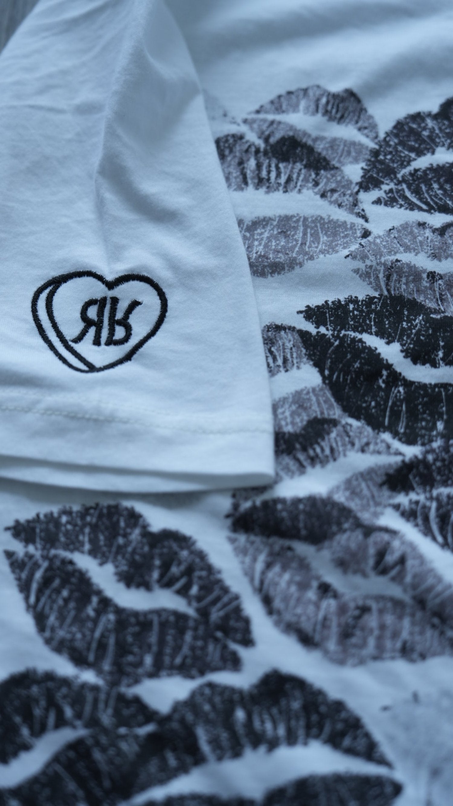 Black kisses design printed on white tee